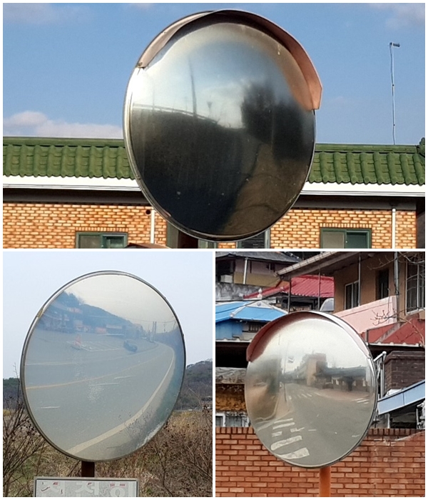 중학동 세무서 앞, 월송동 인근, 정안면 운궁리 대로변 등에서 확인된 것만 해도 거울면의 재질 자체가 불량해 명도(明度)가 급격히 떨어지고 사물의 식별이 사실상 불가능했다. 거울이 혼탁해져 제구실을 못하는데도 수년째 내버려 둔 것들이다.