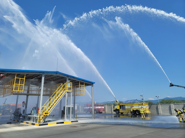 [동양일보 조석준 기자]한국공항공사 청주공항은 지난 27일 청주국제공항 항공유 저장소에서 민‧관‧군 합동 화재진압 훈련을 실시했다.(사진)