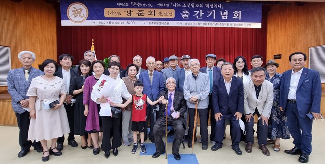 [동양일보 윤규상 기자]한국 문단을 대표하는 소설가 강준희(86) 작가가 펴낸 대하소설 ‘촌놈(전 5권)’과 선비소설 ‘나는 조선왕조의 백성이다’ 출간기념회가 4일 오후 3시 충주시평생학습관에서 열렸다.(사진)