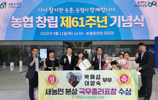 15일 농협충북본부에 따르면 지난 11일 농협중앙회 본부에서 진행된 ‘57회 새농민상(像) 본상’시상식에서 영동농협 조합원인 박해섭·이양숙씨 부부가 국무총리상을 수상했다.
