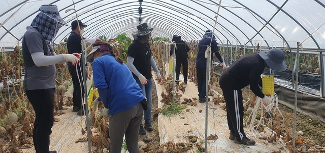 30여 명의 충남북 본부 직원들은 기록적 폭우로 인해 피해를 입은 메론 제거 및 밭고랑에 무더기로 쌓인 토사 정리 작업에 여념이 없었다.