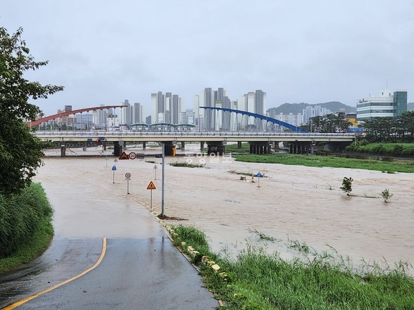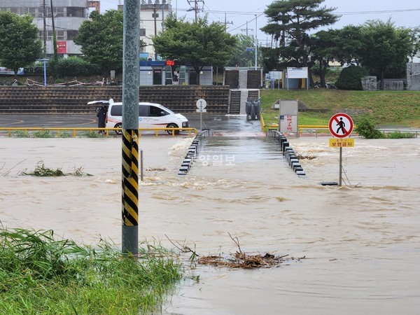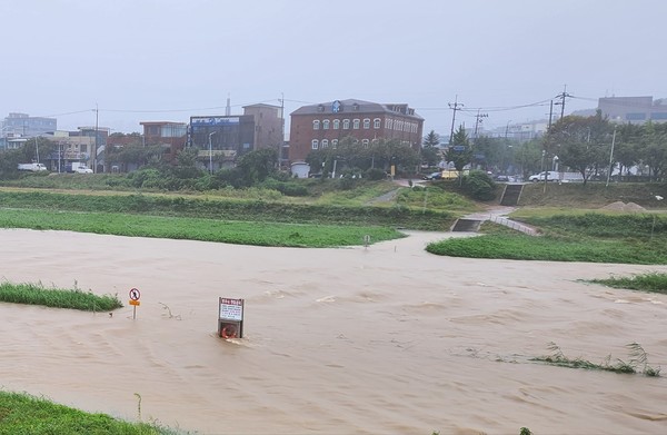 물에 잠긴 무심천 하상도로와 도심 하천 주차장 등 35곳을 통제하고 속리산·월악산·소백산 국립공원의 탐방로도 입산을 금지했으며, 이날 청주∼제주를 오가는 항공편도 결항됐다.