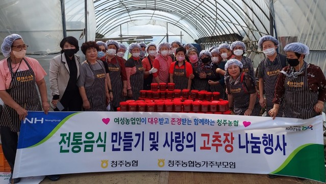 [동양일보 이정규 기자]청주농협은 20일 청주시 분평동 농가에서 농가주부모임 회원들과 함께 전통 식문화 체험 및 사랑의 고추장 나눔 행사를 가졌다.