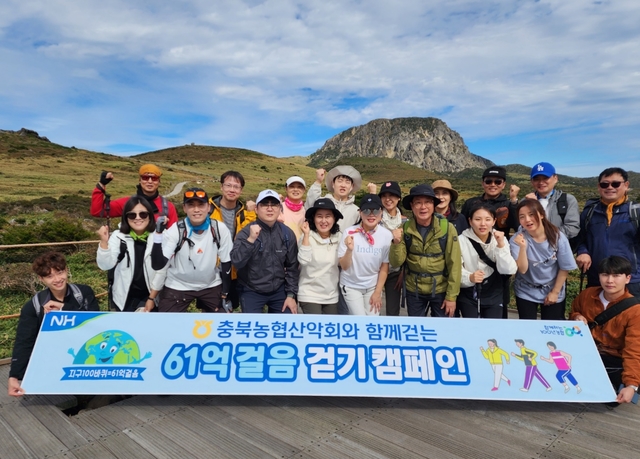 [동양일보 이정규 기자]충북농협 무심산악회는 지난 24일 제주 한라산에서 탄소저감 실천문화 확산 및 농협의 ESG 실천의지에 대한 공감대 형성을 위한 '농협과 함께 걷는 61억 걸음 걷기 캠페인'을 펼쳤다.