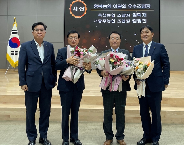 [동양일보 이정규 기자]농협충북본부는 12일 지역본부 대회의실에서 서충주농협 김광진 조합장, 옥천농협 임락재 조합장에게 우수조합장상을 시상했다.