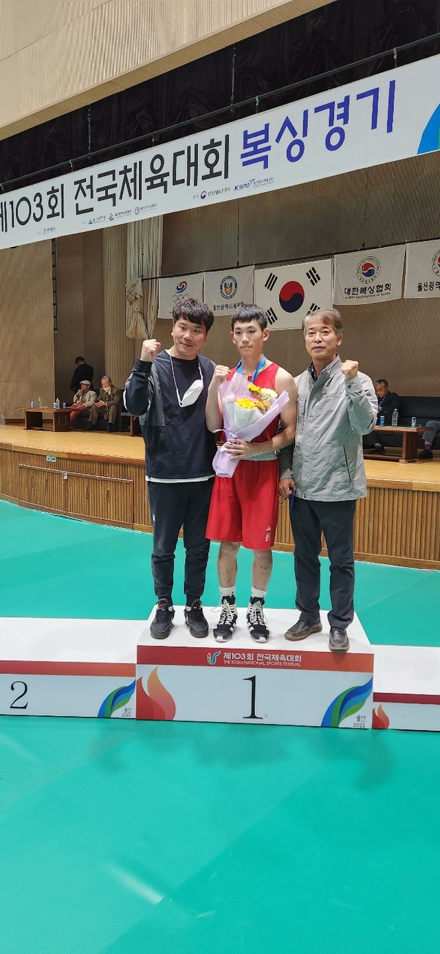 충주 충원고 김건웅(3년)은 복싱 남자 19세 이하 밴텀급 부문에서 금메달을 땄다.