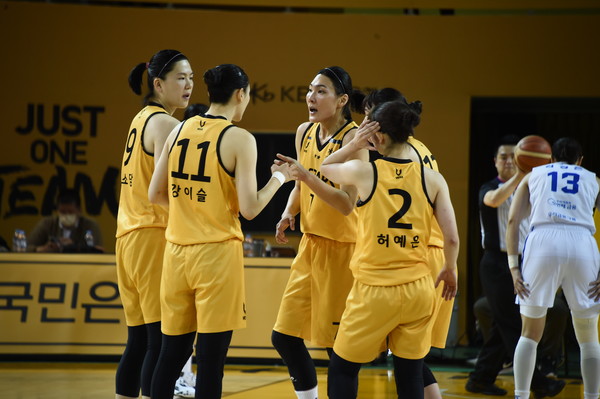 KB스타즈는 디펜딩 챔피언의 수식어가 무색한 경기를 펼쳤다. 전반부터 우리은행에게 1쿼터를 14-20으로 내주며 점수차를 좁히지 못했다. 2쿼터에서도 최희진-양지수가 외곽을 책임지는 수비를 보였지만 역부족이었다.