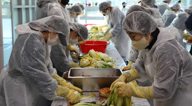 [동양일보 조석준 기자]서원대가 청주서원노인복지관과 함께 지역사회 소외계층이 따뜻한 겨울을 보낼 수 있도록 ‘김장나눔 봉사’를 진행했다.(사진)