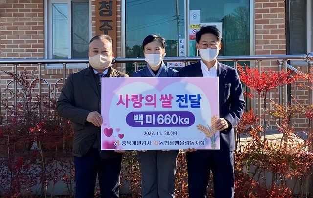 [동양일보 이정규 기자]농협은행 율량동지점은 충북개발공사와 30일 청주시 죽림동 에덴원(원장 유희정)을 방문해 ‘ 660kg의 사랑의 쌀을 나눔했다.