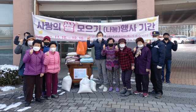 [동양일보 이정규 기자]충북 증평읍 송산1단지아파트 주거행복지원센터는 입주민들과 함께하는 사랑의 쌀모으기 운동을 매년 실시해 주위에 훈훈한 감동을 주고 있다.