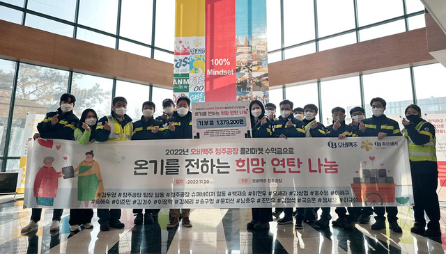 오비맥주 청주공장은 지난 11월 임직원들로부터 중고물품을 기증받아 판매하는 사내 행사인 플리마켓을 열어 판매 수익금 137만원을 마련했다.