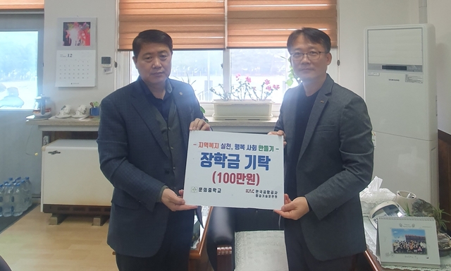 [동양일보 이정규 기자]한국공항공사 항공기술훈련원은 28일 문의초와 문의중에 각각 장학금 100만원(200만원)을 기탁했다. 정의수 항공기술훈련원장은 "앞으로도 공기업으로서 사회적 책임을 다하고 학생들의 성장과 발전을 위해 장학금을 기탁하겠다"고 약속했다. 이정규 기자 siqjaka@dynews.co.kr