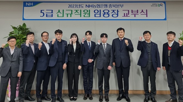 [동양일보 이정규 기자]NH농협은행 충북본부(본부장 황종연)는 16일 김영준 충북노조위원장 등이 참석한 가운데 충북본부에서 2023년 5급 신규직원에 대한 임용장 교부식을 개최했다고 밝혔다.