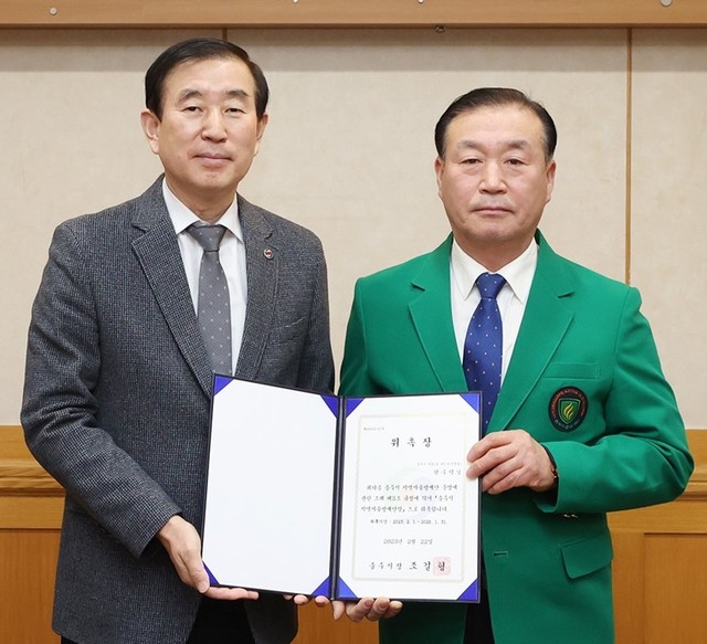 [동양일보 윤규상 기자]충주시가 한수덕(64·사진 오른쪽) 주덕읍자율방재단장을 시 지역자율방재단장으로 위촉했다.
