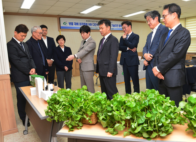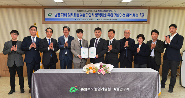 [동양일보 도복희 기자] 충북농업기술원(원장 서형호)은 병풀 고품질 대량생산을 위한 수위 조절형 다단식 식물재배 장치 특허 기술을 에스크컴퍼니(대표이사 안중현) 업체와 통상실시권 실시계약을 지난 6일에 체결했다.<사진>