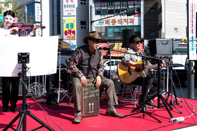 최 시장은 축제 기간 중 시민들에게 도움을 주고 함께 할 수 있는 방안을 찾던 중 전날 김정섭 조치원읍장에게 공연을 제안하며 거리공연(버스킹)에 참여하게 됐다.