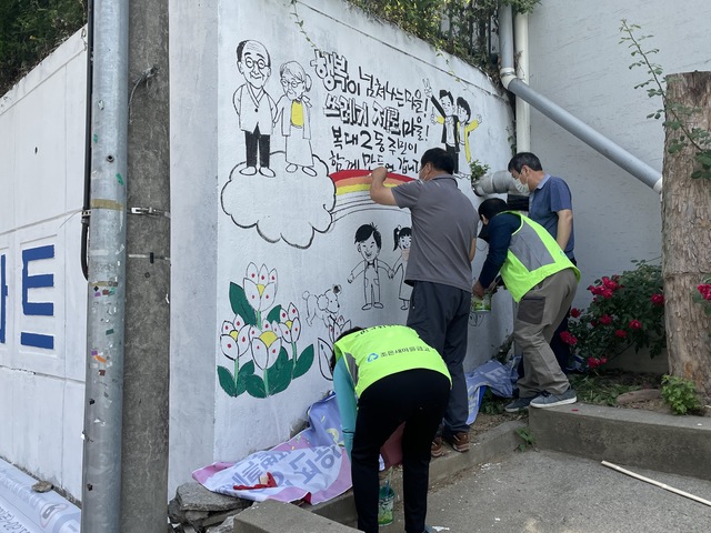 청정지역으로 변모한 환경취약지에 무단투기 재발 방지를 위한 벽화 조성사업도 진행됐다. 낡고 오래된 벽이 무단투기를 유발하는 점에 착안한 센터는 주민자치위, 대한적십자사 충북지사, 가경중, ㈜복대동 사람들 등 200여명의 주민들과 삼일‧성광 아파트, 행복빌라, 신율봉공원 담장을 캔버스로 변화시켰다. 주민들이 직접 그린 벽화는 쓰레기 무단투기를 막고, 아름다운 경관을 조성해 일석이조의 효과를 냈다.