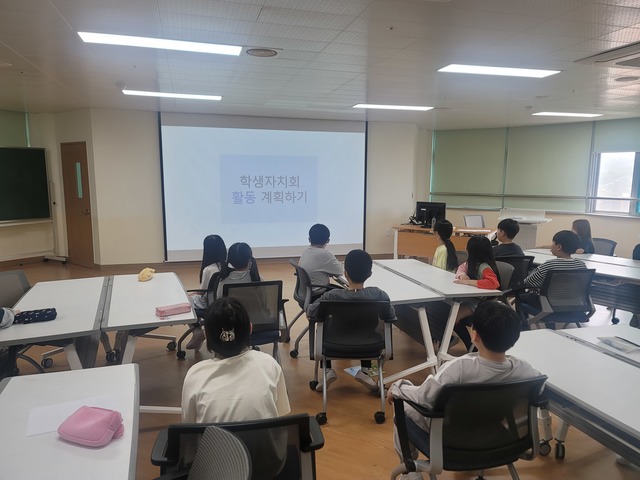 전체 임원 학생이 참여해 다양한 의견을 나누며 학생자치회 일원으로 자긍심을 키우는 시간을 가졌다.