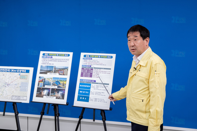 이 군수는 이날 증평군청 브리핑실에서 기자회견을 열어 이같이 밝히며 “구제역이 발생한 도안면에서 증평농협중앙회, 괴산증평 축협, 증평소방서 등 유관기관 방역대책 회의를 가졌다”며 “구제역 확산을 막기 위해 군과 사회단체는 모든 역량을 모아 적극 대처하고 있다”고 강조했다.