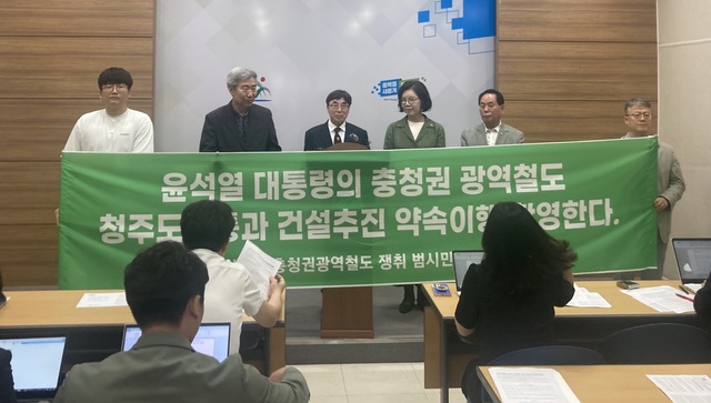 [동양일보 이정규 기자]청주도심통과 충청권광역철도 쟁취 범시민비상대책위원회(이하 비대위)는 7일 충북도청 브리핑룸에서 기자회견을 열고 "윤석열 대통령의 청주 도심 통과 충청권 광역철도 건설추진 약속 이행을 환영한다"고 밝혔다.