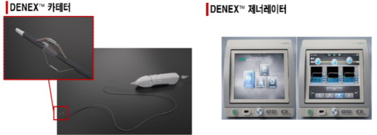 ‘디넥스(Denex ‘일회용발조절식전기수술기용전극’·‘범용전기수술기’)’는 약물치료로 고혈압이 조절되지 않는 환자에 대해 고주파에너지를 이용해 치료하는 국내 첫 제품이다.