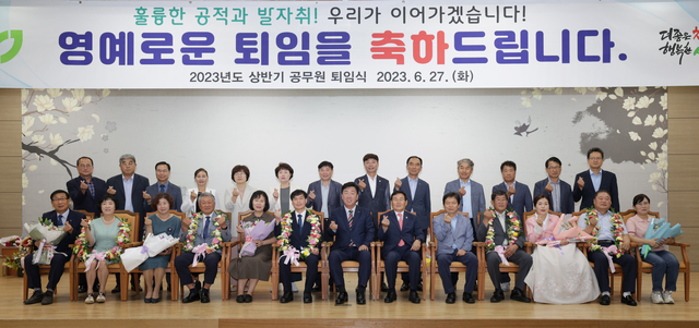 [동양일보 허준서 기자]청주시는 27일 서원구청 2층 대회의실에서 2023년 상반기 공무원 이·퇴임식을 열었다.