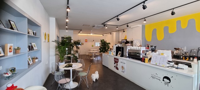 화이트톤의 깔끔하고 모던한 느낌의 ‘뚱뚱이 커피’ 카페 안, 커피 한 잔의 여유가 즐겁다.