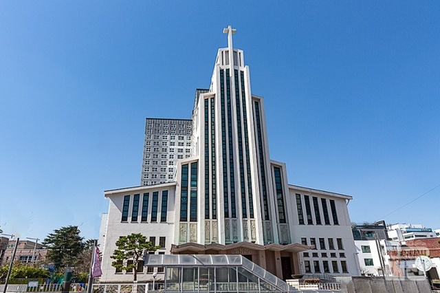 1919년에 설정된 대흥동 성당. 대전 원도심 한가운데서 대전 시민과 함께 100년의 여정을 걸어왔다. 특히 1960년대 한국 모더니즘 성당건축의 대표작으로서 고딕 양식을 현대적으로 해석한 미학적, 기술적 가치 또한 높이 평가 받고 있다. 정래수 기자 raesu1971@dynews.co.kr