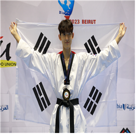 이 선수는 이번 대회에서 한국 남자 선수 중 유일하게 금메달을 획득하며 태권도 종주국의 자존심을 지켜냈다.