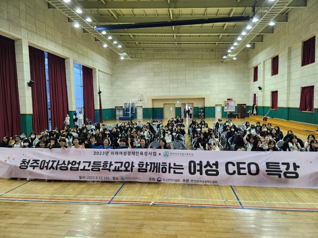 [동양일보 도복희 기자]한국여성경제인협회(협회장 이정한)는 13일 오전 10시 30분 청주여자상업고 아름관에서 ‘2023 미래여성경제인육성사업 여성CEO특강’을 진행했다.<사진>
