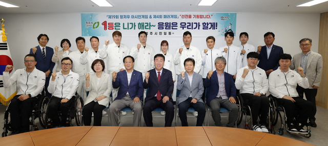 [동양일보 이민기 기자]청주시 직장운동경기부 소속 국가대표 선수단은 15일 청주시 2임시청사 소회의실에서 19회 '항저우 아시안게임, 패러게임’ 출정식을 가졌다.