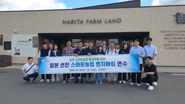 이번 일본 연수단은 충북형 스마트팜 모델을 정립하고 향후 도내 스마트농업 육성 종합계획 수립과 스마트농업 사업 추진 시 다양한 검토를 위해 충북도와 제천시, 영동군, 괴산군을 비롯, 충북개발공사 실무진 등이 참여한다.