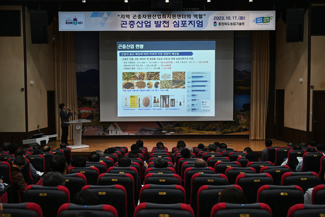 [동양일보 도복희 기자] 충북농업기술원(원장 서형호)은 17일 지역 곤충자원센터 담당자와 곤충산업에 종사하는 관계자 등 100여 명이 참석한 가운데 기술원 생명농업관에서 ‘지역 곤충자원산업화 지원센터의 역할’을 주제로 곤충산업 발전 심포지엄을 개최했다.<사진>
