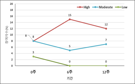 신체활동도 좋아져 고(高) 신체활동군은 처음 8명에서 12명으로 늘었다.