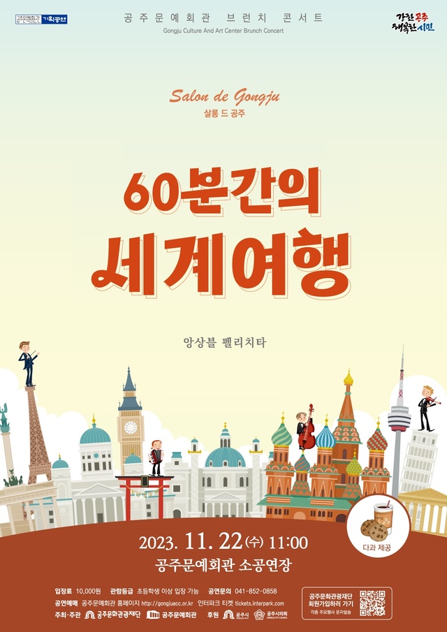 [동양일보 유환권 기자]공주문예회관은 오는 11월 22일 오전 11시에 공주문예회관 소공연장에서 <살롱 드 공주> ‘60분간의 세계여행’<사진>을 선보인다.