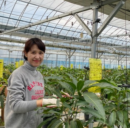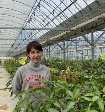 그는 총 986평 중 600평의 스마트팜에서 애플망고 550주를 분재배로 키워내고 있는 귀농 6년차 여성농업인이다. 스마트팜 주변으로 386평의 면적에는 고구마 등 제철 농작물 재배를 위한 텃밭, 공작 및 청계 사육장 등을 구성하여 농촌체험을 위한 공간도 마련해두었다.