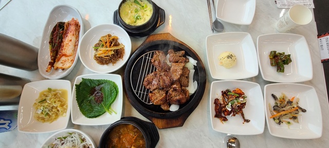 가온석갈비 율량점은 코로나 시기에 도시락 배달을 시작했다. 숯불돼지갈비에 게장, 오리고기, 감자샐러드, 아삭이·마늘, 은목이버섯냉채무침, 2~3가지 종류의 나물(계절별로 종류 다양) 반찬을 곁들인 도시락은 인기가 좋아 지금도 주문이 이어지고 있다.