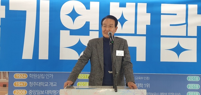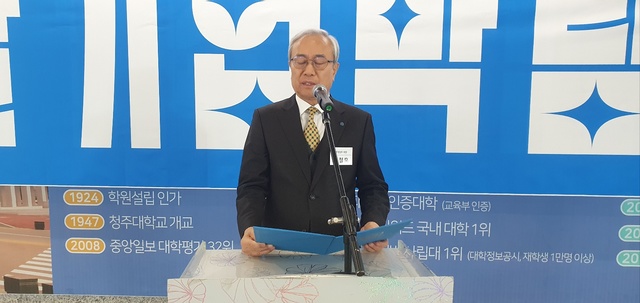 [동양일보 조경민 기자]○ 손상희 청주대 부총장이 김윤배 총장을 대신해 환영사 연설.