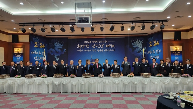 [동양일보 최재기 기자]충남 경제의 상생과 힘찬 도약을 다짐하는 '2024년 충남 경제계 신년교례회'가 5일 천안시 서북구 불당동 충남북부상공회의소 10층 컨벤션 홀에서 열렸다.
