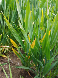 △위축병(BYDV, Barley Yellow Dwarf Virus)은 진딧물이 옮기는 바이러스병이다. 감염되면 보리 잎은 노란색, 밀․귀리는 보라색 또는 붉은색으로 변한다. 병이 심해지면 식물체가 자라지 않고 말라 죽어 수확량이 감소한다. 최근 진행한 무작위 채취 조사에서 맥류 절반이 위축병 감염으로 진단돼 주의가 필요하다.