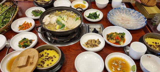 팥이 들어간 가마솥 강황밥은 건강과 맛을 배가시킨다. 밥을 덜어내 먹고 식후 뚝배기에 물을 부어 먹는 누른밥은 맛도 맛이지만 소화도 도와준다.