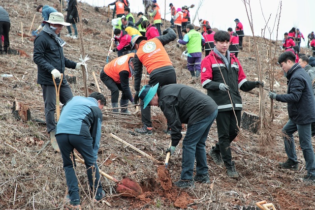 시는 대호지면 사성리 1.85헥타르(ha)의 면적에 왕벚나무(접목 1년생) 2,000여 본을 심었다. 지난해 4월 대형 산불로 대호지면 사성리와 조금리 일원은 100헥타르(ha)에 이르는 산림이 소실됐다.