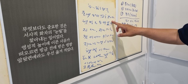 김 관장은 ‘금강’이란 시가 어떻게 쓰여지게 됐는지 자료를 조사하고 정리해 ‘신동엽 동학노트’를 기획하고 전시했다.