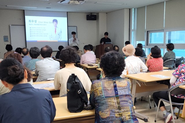 고온다습한 날씨에 따른 노인들의 건강 문제 예방을 위해 열린 이날 강연에는 강연자인 최 병원장을 비롯한 복지관 회원 40여명이 참석했다.