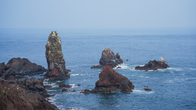 [동양일보 손상훈 기자]10호 태풍 '산산'이 북상중인 가운데 26일 제주도 서귀포시 성산읍 섭지코지에서 바라본 선녀바위 주변 바다는 잔잔한 파도만 치고 있다. 태풍 '산산'은 한반도에 직접적인 영향은 없겠으나 뜨거운 바람을 몰고 와 당분간 무더위와 열대야가 이어질 것으로 보인다. 손상훈 mjsh9370@dynews.co.kr