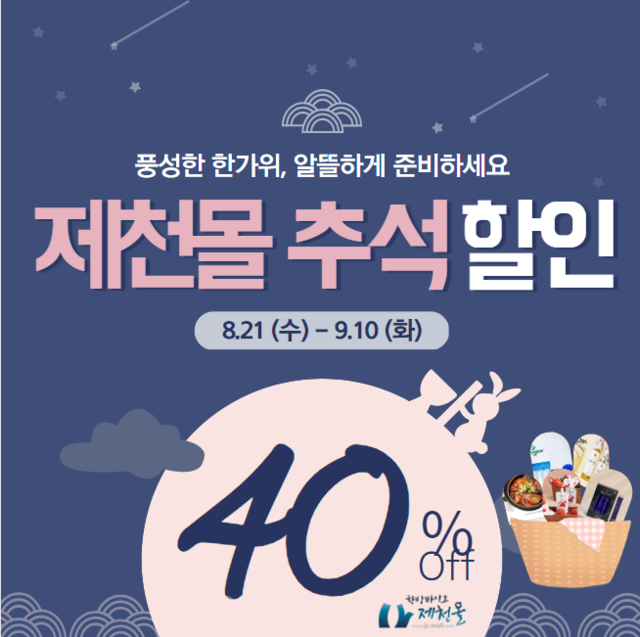 [동양일보 장승주 기자]한방특화도시 제천시가 육성·지원하고 제천한방바이오진흥재단이 운영하는 ‘한방바이오제천몰(이하 제천몰)’에서 2024년 추석명절을 맞아 오는 9월 10일까지 할인이벤트를 한다.