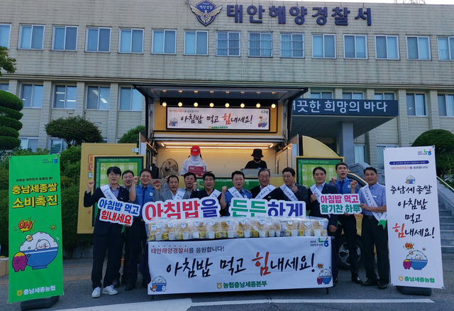 쌀 값 하락으로 어려움을 겪고 있는 농업인을 지원하고자 충남세종농협이 태안해양경찰서, 태안소방서, 태안경찰서와 공동으로 아침밥 먹기 캠페인을 진행하고 쌀의 중요함을 널리 알리기로 한 것이다.