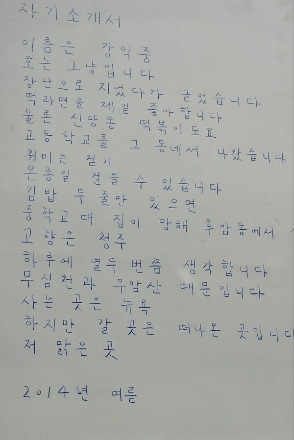 그런데 묘하게도 생각이 날 때마다 찾아 꺼내보게 되는 강익중의 ‘자기소개서’.
