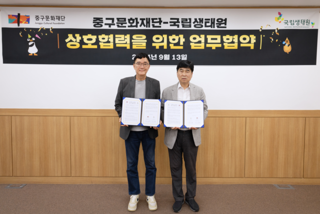 [동양일보 도복희 기자]국립생태원(원장 조도순)은 서울 중구문화재단(사장 조세현)과 문화예술 교류를 위한 업무협약을 체결했다고 19일 밝혔다.<사진>