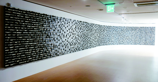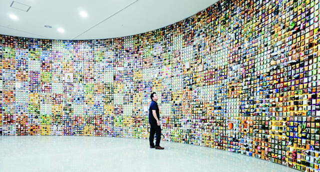 ‘8490일간의 기억-한국에서 지낸 23년’(97, 휘트니뮤지엄 필립모리스갤러리전)이라든가, ‘1392개의 달항아리’(구겐하임뮤지엄 소장품), 6만2000개의 그림이 설치된 ‘멀티플 다이얼로그’(2009, 국립현대미술관), 어린이 6만명의 그림을 모은 ‘10만의 꿈’(1999, 파주 통일동산), 120개국 3만4000점을 모자이크한 ‘놀라운 세상’(2001, 유엔 본부) 등.